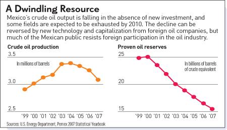 So Calderon's bid to revive Mexico's oil industry through foreign investment is seen by many Mexicans as risky at best, and unpatriotic at worst. It's ironic, of course, because if the oil runs out, there won't be much of a state at all -- and Mexicans will stream across U.S. borders looking for economic relief.